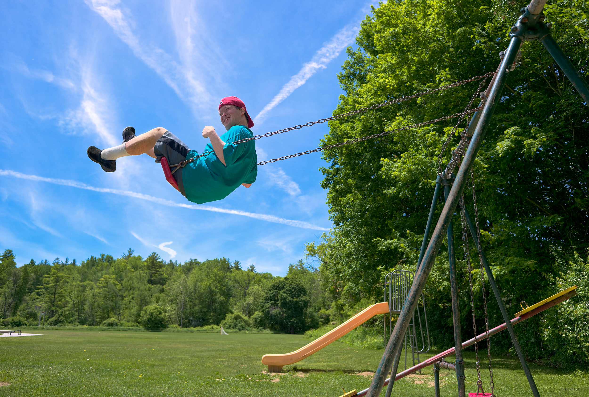 Vapor Trails Over Lee Athletic Field, June 7, 2015, Lee, MA